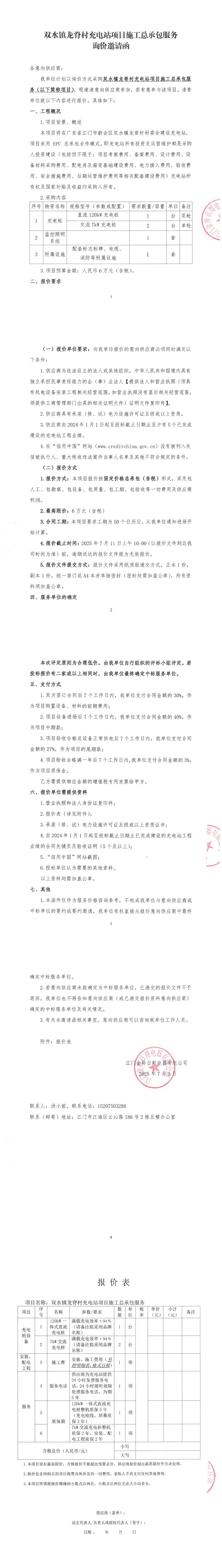 双水镇龙脊村充电站项目施工总承包服务询价邀请函