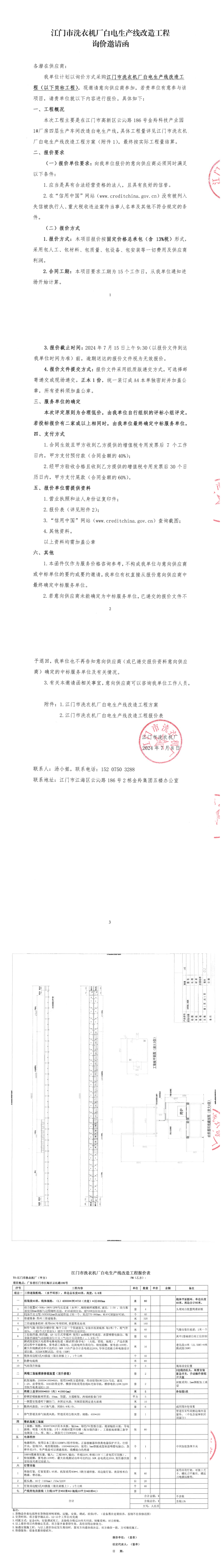 江门市洗衣机厂白电生产线改造工程询价邀请函