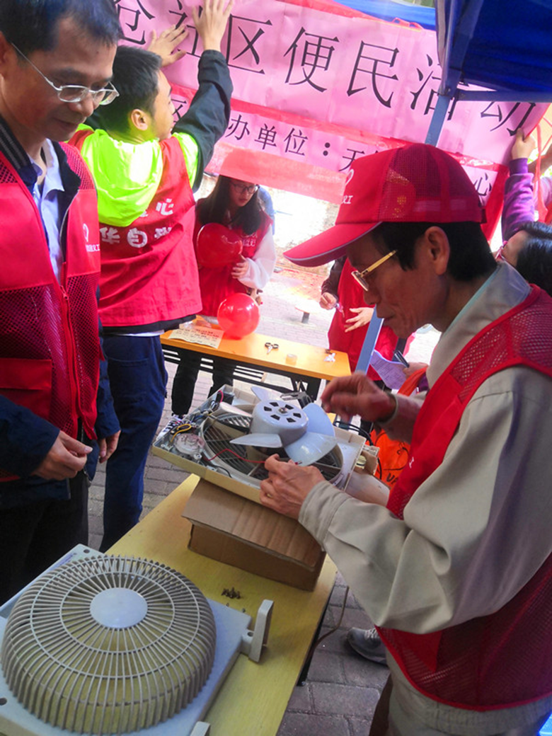 1月4日,金羚集团党员义工队到达目的地后,就迅速开展准备工作,社区居民从家中拿出需要维修的电器来到现场,义工们在维修的同时,还耐心地向社区居民普及家用电器节能环保、维修再利用的知识。